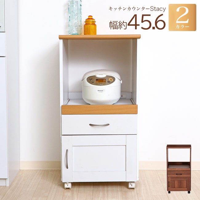 キッチンカウンター 食器棚 キッチンワゴン 炊飯器台 幅45cm おしゃれ 下収納 スリム ミニ ロータイプ キャスター付き アウトレット価格 爆買