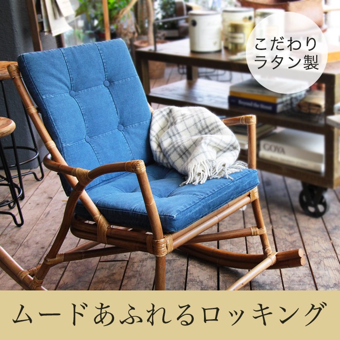 ロッキングチェアー ロッキング デニム ラタン クラシカル アンティーク調 レトロ リラックスチェアー 椅子 揺れ椅子 ゆれ椅子 イス チェアー アウトレット価格