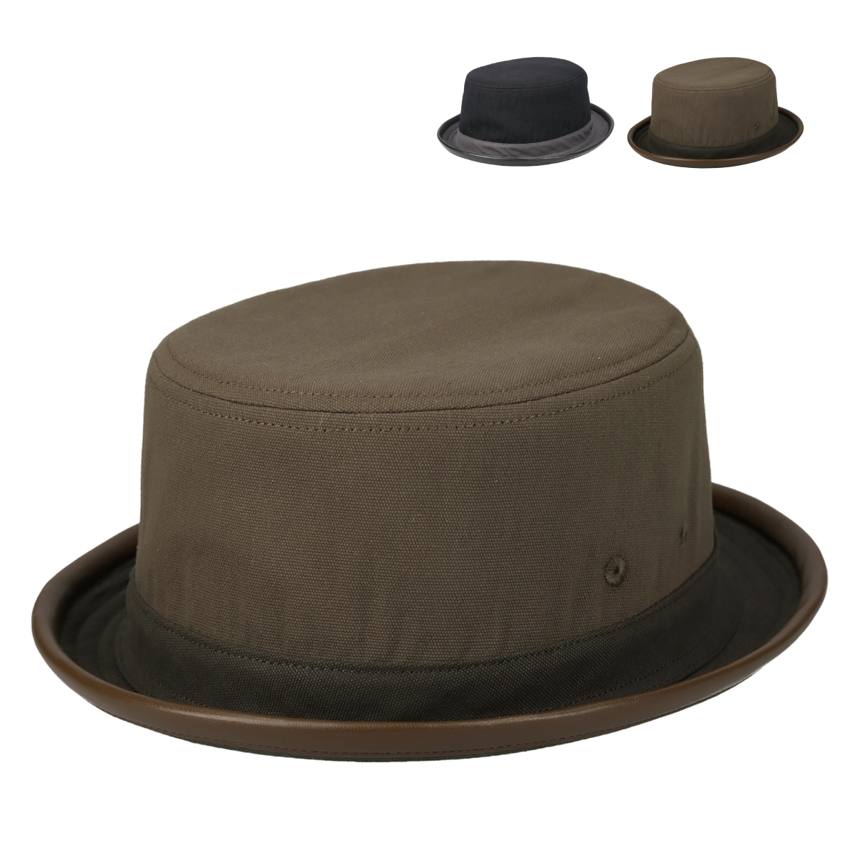 帽子 ハット 抗菌 消臭 ポークパイ フェイクレザー コットン ヴィンテージ バイカラー クラシック 定番 メンズ レディース フリーサイズ Combi PU Pork Pie