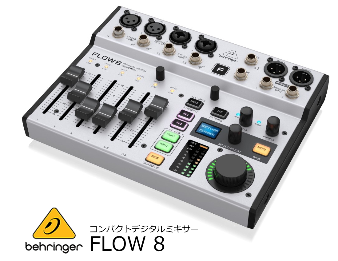 USBオーディオインターフェース、Bluetoothオーディオ、リモートアプリコントロールをはじめ、多彩な機能を備えた、8チャンネル・コンパクトデジタルミキサー「FLOW 8」。