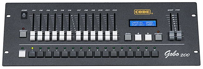 GOBO200 は16台かつ12チャンネルまでのスキャナーを制御することが可能なムービングコントローラーです。