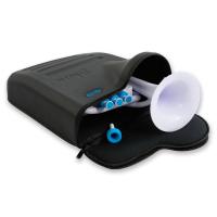 jHORNは、特許取得済みのロータリーフェイスバルブと耐久性のある ABS樹脂から作られており、重量0.7kg/36cm x 30cm の大きさです。