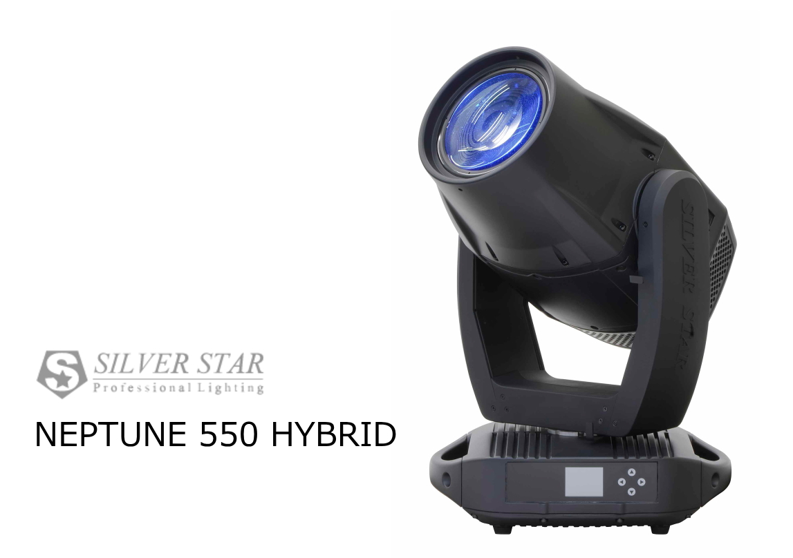 SILVER STAR 「NEPTUNE 550 HYBRID」はNEPTUNE400HYBRIDOをベースに寸法/重量をほぼそのままに開発された550W LEDモジュール搭載の非常に高出力な屋外対応のハイブリッドタイプのムービングライトです。