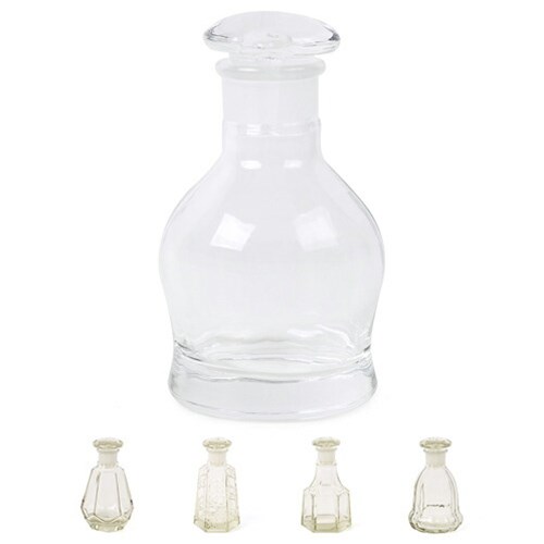 一般の卓上醤油差しとして販売されているサイズに近い100〜140mlの復刻醤油差しは、デザインが異なる6種類から選ぶことができます。「亀甲」は亀の甲羅を思わせるシンプルな造形、「籠目」はレトロで繊細な模様が描かれています。「桜」はうっすらと見える桜の花びらのラインが魅力的。「菊紋」は縁起の良い紋様を装飾した、全体的に丸みのある仕上がりです。また、「12面体柄」はひとつひとつの面が細かく手になじみやすいフォルム。「元祖すり口」はフタ部分にすりガラスを採用したすり口のルーツとなった製品で、つるんとしたラインが素朴な美しさです。