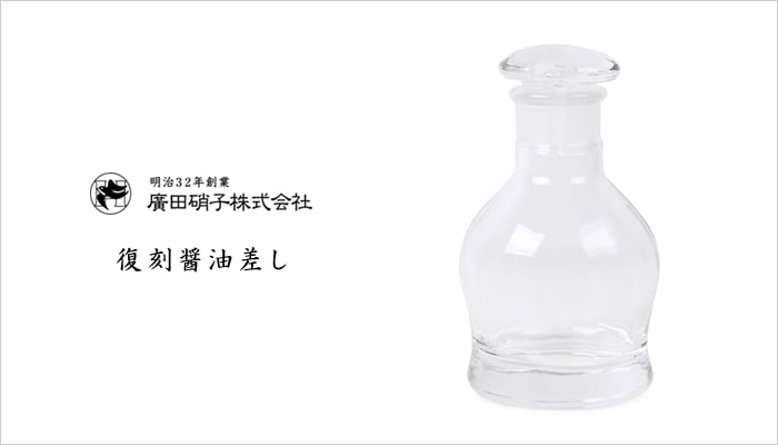 廣田硝子では、創業時よりさまざまな醤油差しを作ってきました。その中でも、歴史あるデザインを現代に使いやすいかたちで復刻させた復刻醤油差しシリーズは、日本らしい造形が現代の食卓にもよく合います。あると便利だけれどなかなか購入する機会がない醤油差しは、贈りものにもぴったり。ひとつ持っているだけで食卓を彩ってくれるでしょう。