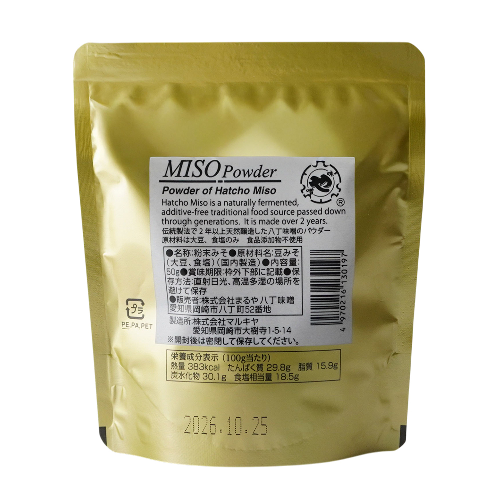| 創業600年超、まるや八丁味噌の伝統を凝縮。和・洋・スイーツ、何にでも。 愛知県岡崎市で延元二年(1337年)より続く伝統の味。あの「まるや八丁味噌」が、使い勝手抜群のパウダー状になりました。 ■ 伝統の「二夏二冬」熟成を、一振りで 天然醸造で2年以上じっくりと熟成させた八丁味噌は、大豆の旨味が凝縮された濃厚なコクと、わずかな渋みが特徴です。その本格的な味わいを、フリーズドライ製法でさらさらの粉末に仕上げました。水分を含まないため、これまでの味噌の常識を覆す「かける」「和える」「振る」といった自由な使い方が可能です。 ■ 毎日の料理が、一瞬で「プロの味」へ 「味噌を溶かす手間」はもう必要ありません。 お湯を注ぐだけで本格的な赤出汁が楽しめるのはもちろん、カレーやビーフシチューの隠し味、ステーキのスパイス、さらにはバニラアイスのトッピングまで。和食の枠を超え、洋食やスイーツにも驚くほどの深みを与えます。 ■ 安心の無添加・国内製造 原材料は「大豆」と「食塩」のみ。保存料や化学調味料を一切使用していない無添加仕上げです。健康にこだわる方へのギフトや、名古屋・岡崎のこだわりのお土産としても大変喜ばれています。 【こんなシーンにおすすめ】 時短調理に:忙しい朝の1杯の味噌汁に。 おつまみに:チーズやナッツにパラリと振って。 アウトドアに:軽量で持ち運びやすく、キャンプ飯の味付けにも。 600年の歴史が息づく、黄金の小袋。あなたのキッチンに、新しい美味しさの感動をお届けします。 |