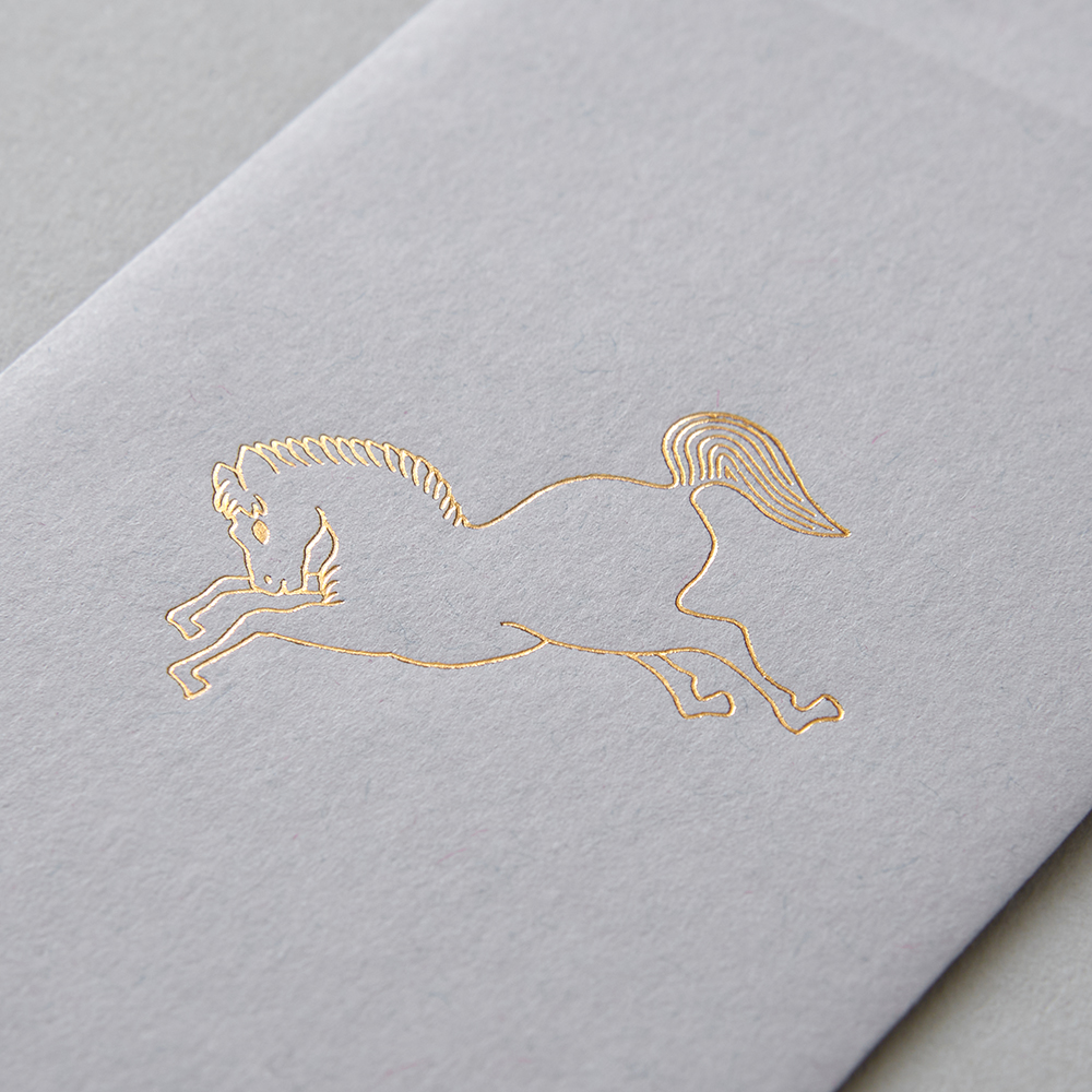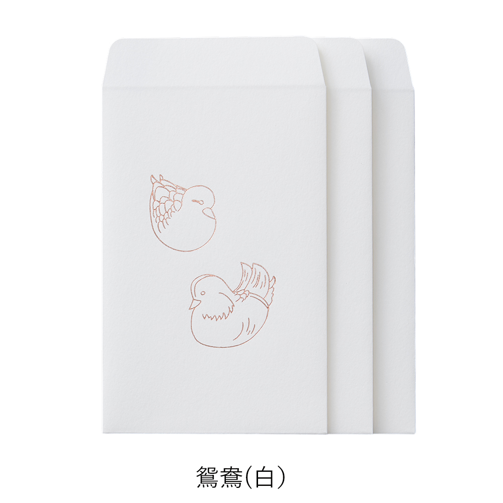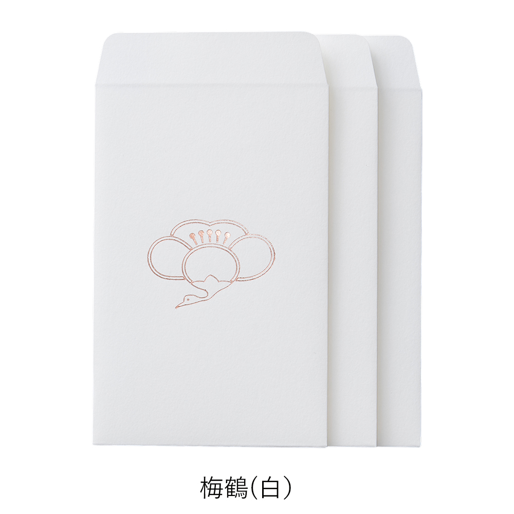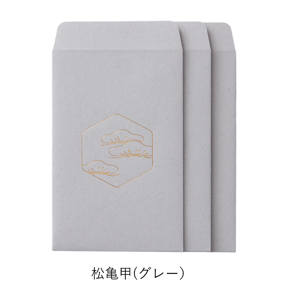 | 縁起のよい布をつくってきた、織物屋ならではのぽち袋。 工房にストックされてきた吉祥柄や家紋の下絵がモチーフになっています。 西陣織の繊細な金箔の糸をイメージした箔押しで美しく仕上げました。 シーンを選ばず、ハレとケのどちらにもお使いいただけます。 <梅鶴>縁起のよい梅と鶴を合わせて意味合いを重ねる「見立て紋」という手法でつくられた家紋です。 <鴛鴦>いつも仲良く寄り添うおしどりの夫婦は、縁起のよい鳥として古くから親しまれています。 <松亀甲>松は常に緑の葉をつけていることから、不老長寿の象徴とされてきました。亀の甲羅を図案化した亀甲もまた不老長寿の縁起物です。 <走り馬>馬の家紋のひとつ。神様の乗る生き物として神社に奉納されていた名残が現在の絵馬です。戦国時代には勝利の象徴にもされていました。 |