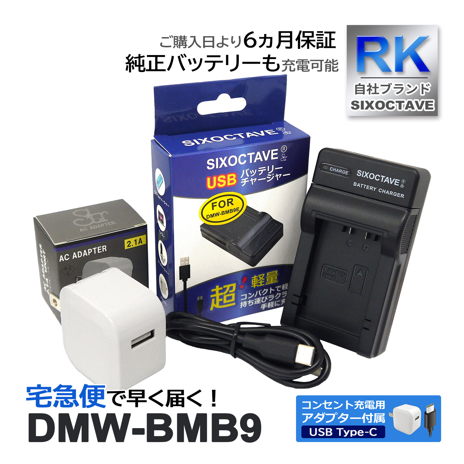 【互換品】 DMW-BMB9 パナソニック ルミックス 互換 USB 充電器 【コンセント充電用 ACアダプター付き】 2点セット 純正バッテリー 充電可能 (a2.1)