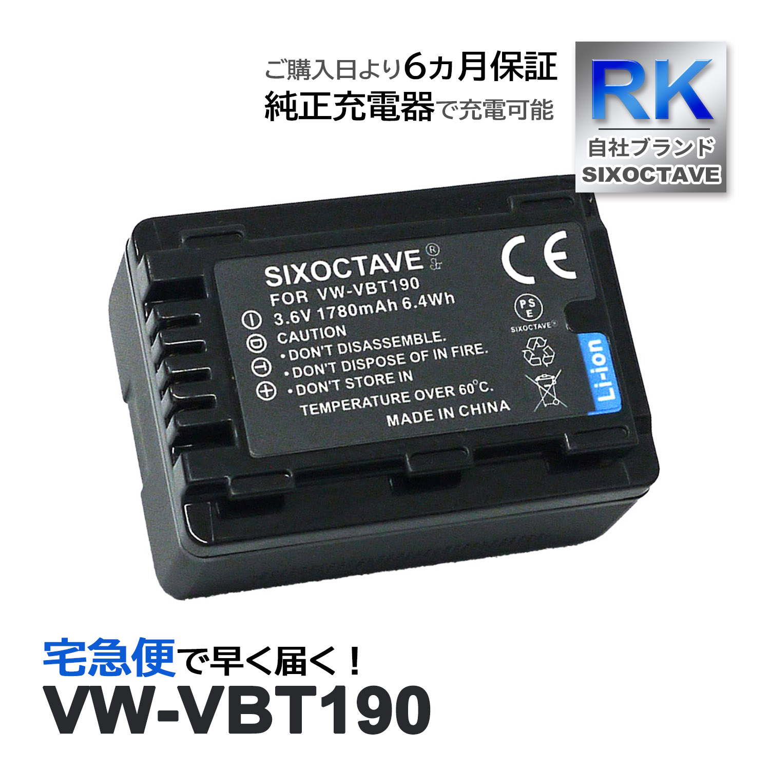 【互換品】 VW-VBT190 VW-VBT190-K パナソニック ビデオ 互換 バッテリー 1個 HC-WX970M HC-WX990M HC-VX1M HC-VX2M HC-VZX1M HC-VZX2M