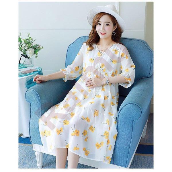 妊婦服/授乳服 マタニティウエア マタニティ 夏服産前産後 ワンピースVネック 5分袖花柄 ワンピース 通気性良い ゆったり ママ大きいサイズ
