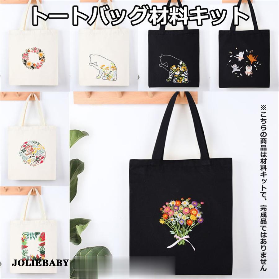刺繍トートバッグ材料キット 手芸材料セット 手作り エコバッグ 花 植物 猫 刺繍枠 刺繍針 図案 トートバッグ 刺繍糸セット 中級者向け おうち時間