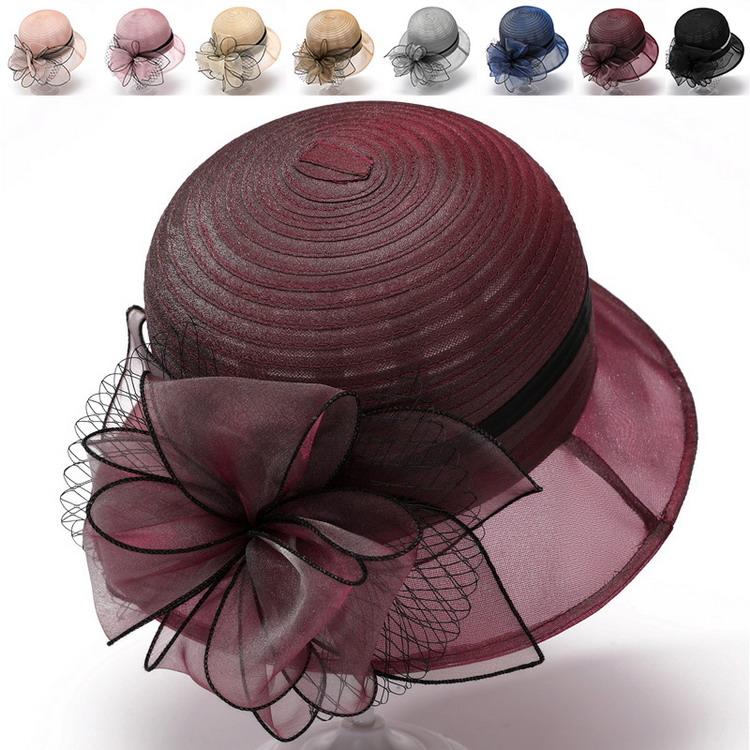 クロシェ ハット 帽子 クローシュ オーガンジー フラワー 深め つば広 日よけ パーティー リゾート レディース 母の日