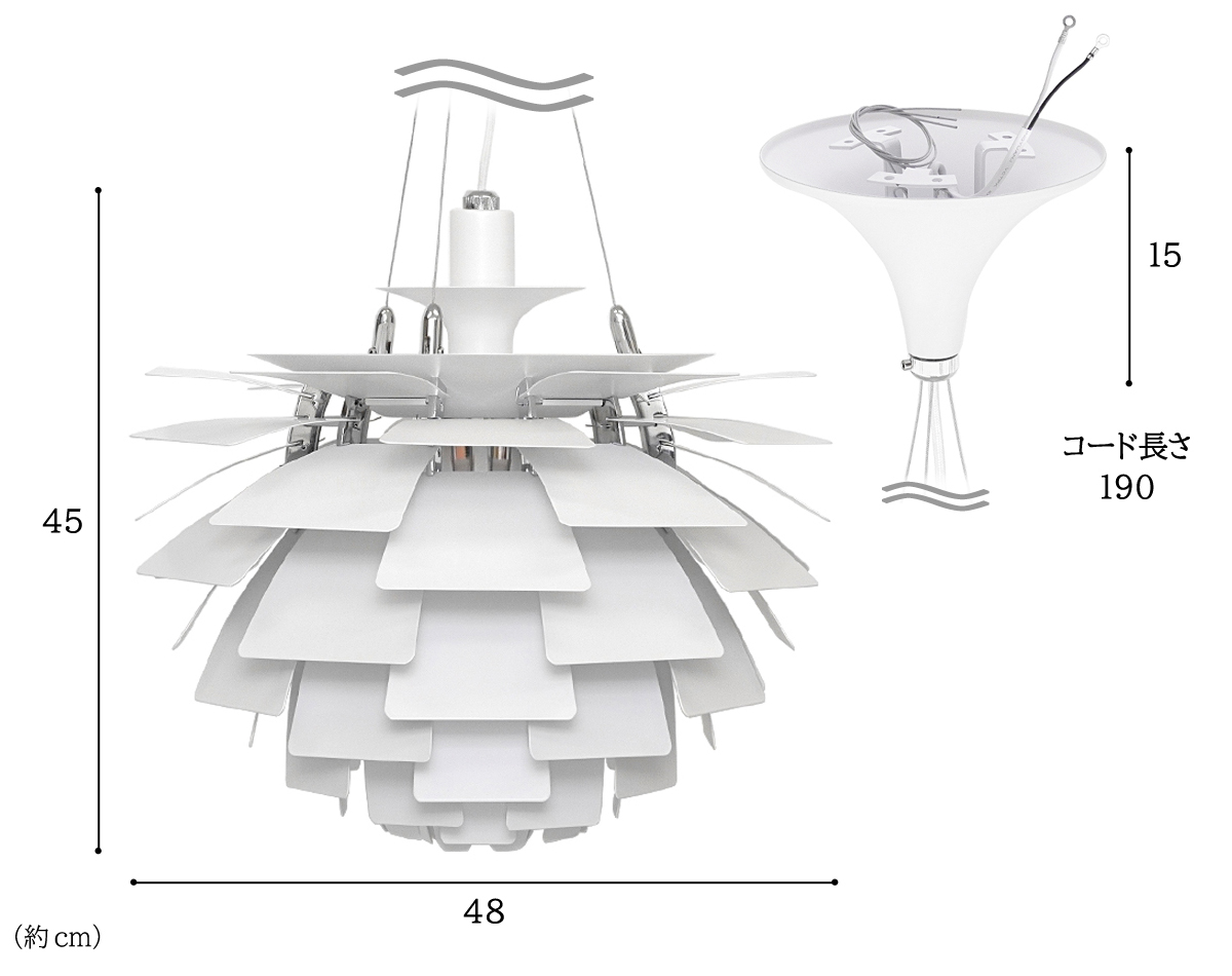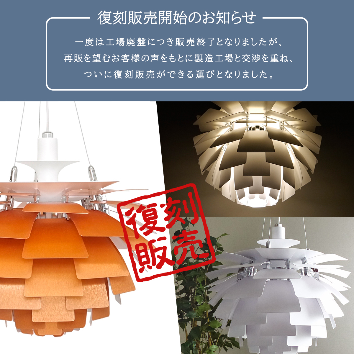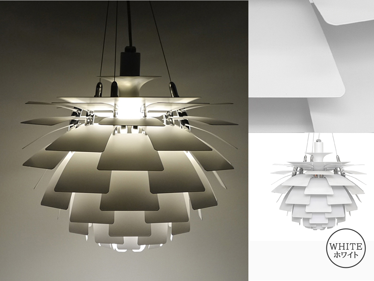 アーティチョーク(チョウセンアザミ)を模して設計されたフォルムは現代においてもアイコニックで洗練された雰囲気を醸し出し消灯時もモダンなインテリアとして機能するシルエットが秀逸です。