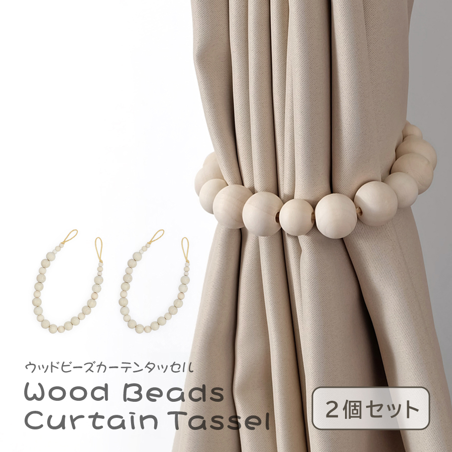 【2個セット】ウッドビーズ カーテンタッセル カーテンホルダー 木製 おしゃれ インテリア