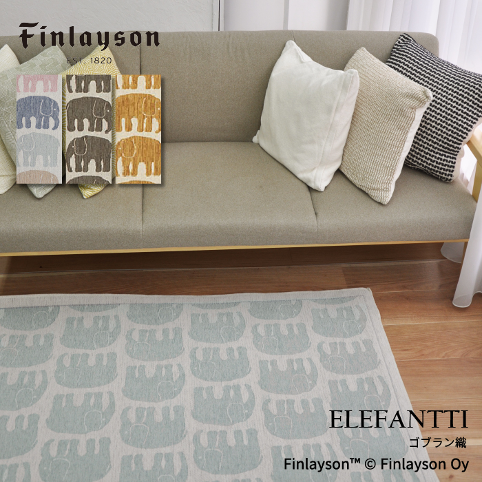Finlayson フィンレイソン ELEFANTTI エレファンティ 玄関マット 50×80cm ベルギー製 ゾウ 北欧 ゴブラン織り 滑り止め 風水