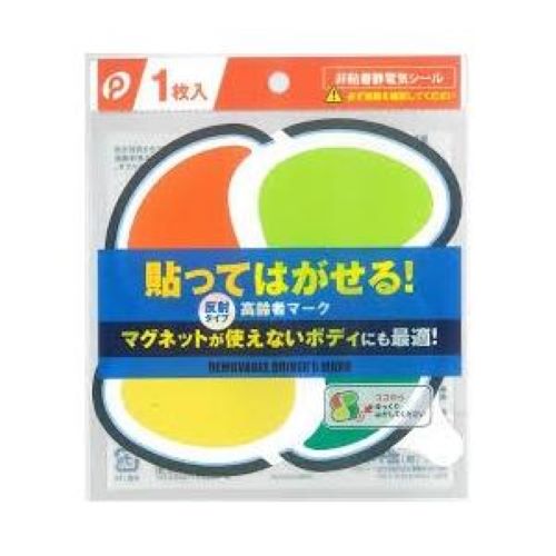 マグネットが使えないボディにも貼り付け自由な、非粘着静電気シールタイプの高齢者マークです