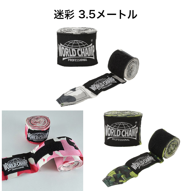 ボクシングバンテージ ワールドチャンプ 迷彩柄 3.5m 非伸縮 迷彩バンテージ 左右1組