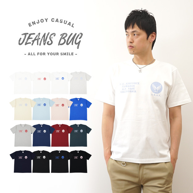 JEANS BUG ジーンズバグ U.S. AIR FORCE エアフォース ミリタリー プリント 半袖 Tシャツ メンズ レディース ゆったり オーバーサイズ 大きいサイズ ビッグサイズ対応 XL 2L XXL 3L オリジナル ブランド 丸胴 厚手 ティーシャツ おしゃれ 白 黒 アメリカ 空軍 米軍 ST-USAF