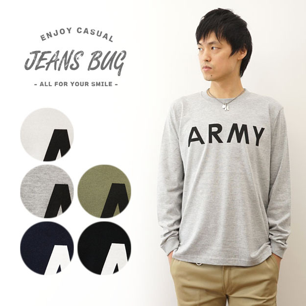 JEANS BUG ジーンズバグ ロンT ARMY JEANSBUG ORIGINAL 長袖 Tシャツ オリジナル アーミー ミリタリー プリント Tシャツ メンズ レディース 大きいサイズ ビッグサイズ対応 丸胴 クルーネック 袖リブ インナー アメリカ 陸軍 米軍 シンプル 英字 ロゴ 白 黒 LRT-ARMY