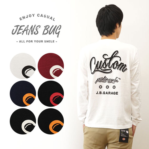 ロンT CUSTOM JEANSBUG ORIGINAL 長袖 Tシャツ オリジナル バイカー プリント Tシャツ メンズ レディース 大きいサイズ ビッグサイズ対応 丸胴 クルーネック 袖リブ インナー カスタム モーターサイクル バイク ガレージ 白 黒 LRT-CUSTOM