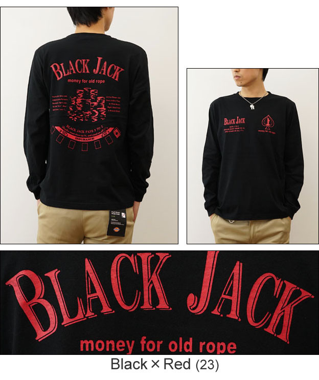 JEANS BUG ジーンズバグ ロンT BLACK JACK JEANSBUG ORIGINAL 長袖 Tシャツ オリジナル ブラックジャック プリント Tシャツ メンズ レディース 大きいサイズ ビッグサイズ対応 丸胴 クルーネック 袖リブ インナー カジノ チップ トランプ スペード ロック パンク エース 白 黒 LRT-BJ
