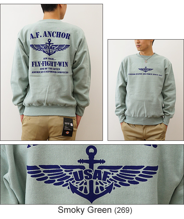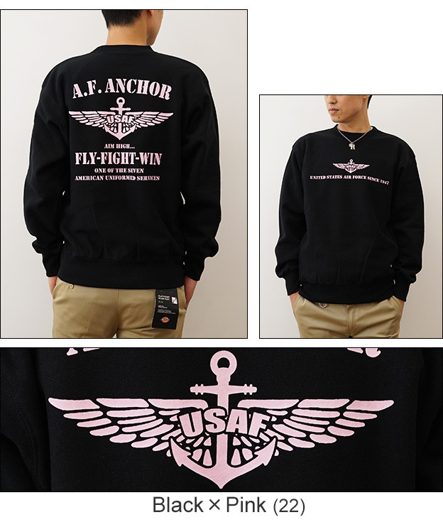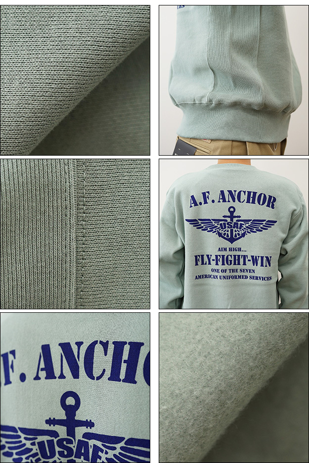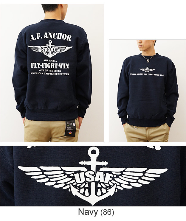 12ozスウェット A.F. ANCHOR オリジナル エアフォース ミリタリー プリント クルーネック スエット 長袖 ヘビーウエイト トレーナー メンズ レディース 大きいサイズ ビッグサイズ対応 厚手 裏起毛 リバースウィーブ アメリカ 空軍 Air Force イカリ 12SW-AFANC 衣裳協力 衣装提供 情報 テレビ朝日 ドラマ 相棒 亀山薫 役 寺脇康文 着用アイテム