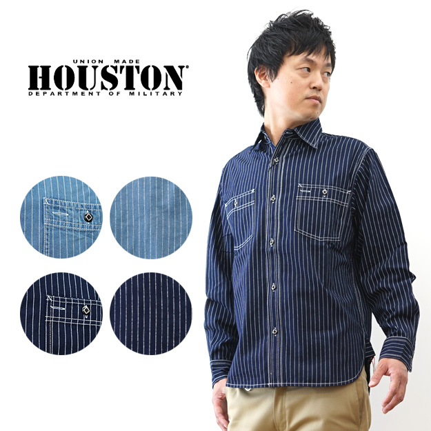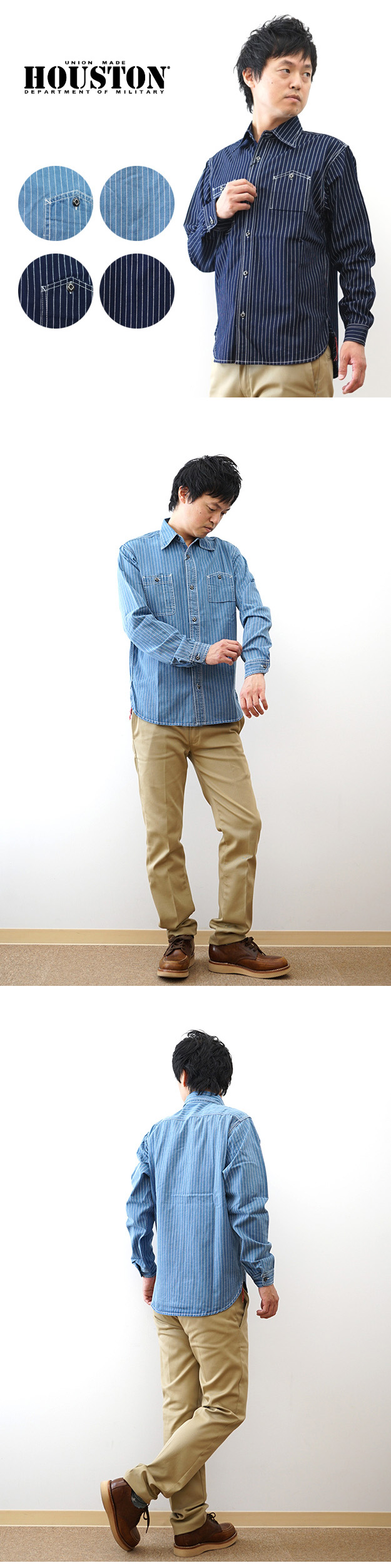 HOUSTON ヒューストン インディゴ ウォバッシュ 40's ワークシャツ メンズ 長袖 大きいサイズ XL 綿100% ストライプ ドット アメカジ ワーク ミリタリー ブランド アメリカ ヴィンテージ 40年代 古着風 おしゃれ 41260