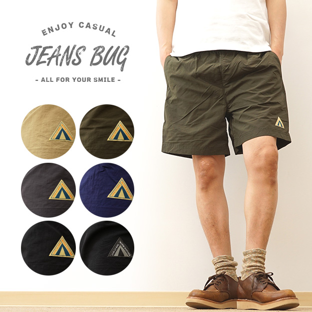 JEANS BUG ジーンズバグ ナイロンショーツ イージー ショートパンツ メンズ レディース ウエストゴム ハーフパンツ 短パン 男 女 無地 速乾 涼しい キャンプ アウトドア クライミング スポーツ 水陸両用 海パン 水着 海 フェス ライブ 夏 登山 半ズボン オリジナル ブランド NLSP-TTG