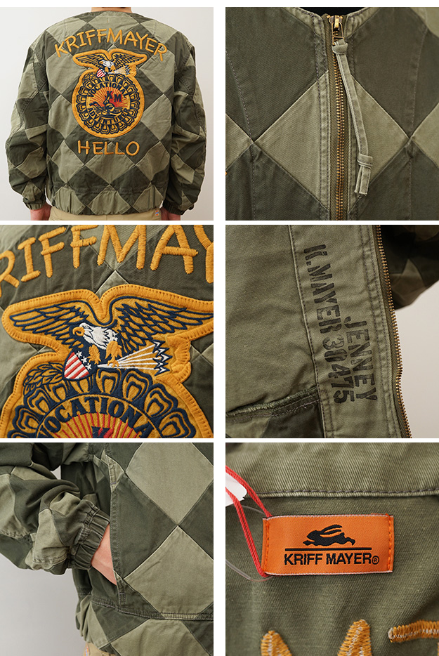 KRIFF MAYER クリフメイヤー ラインクルーマン ジャケット メンズ レディース 大きいサイズ ゆったり 短丈 FFA アウター ブルゾン アメカジ アメリカ ミリタリー バイク ブランド ヴィンテージ 刺繍 古着 デザイン おしゃれ おすすめ 春 秋 冬 カーキ 2434003