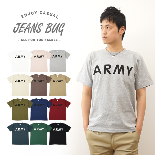 JEANS BUG ジーンズバグ ARMY アーミー ミリタリー プリント 半袖 Tシャツ メンズ レディース ゆったり オーバーサイズ 大きいサイズ ビッグサイズ対応 XL 2L XXL 3L オリジナル ブランド 丸胴 厚手 ティーシャツ おしゃれ 白 黒 アメリカ 陸軍 米軍 シンプル 英字 ST-ARMY