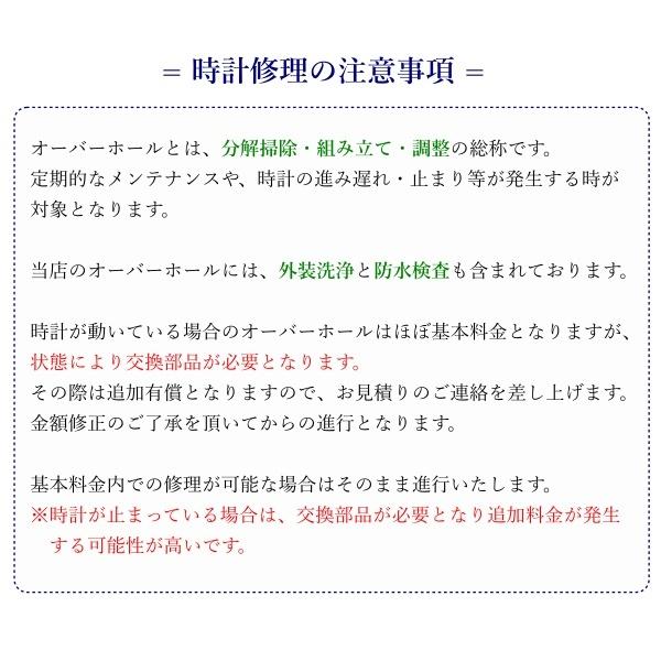 ※お時計到着後、内部を拝見いたしますが、一部特殊モデルにつきましては修理ができない場合がございます。(例)OMEGA、コーアクシャルモデル