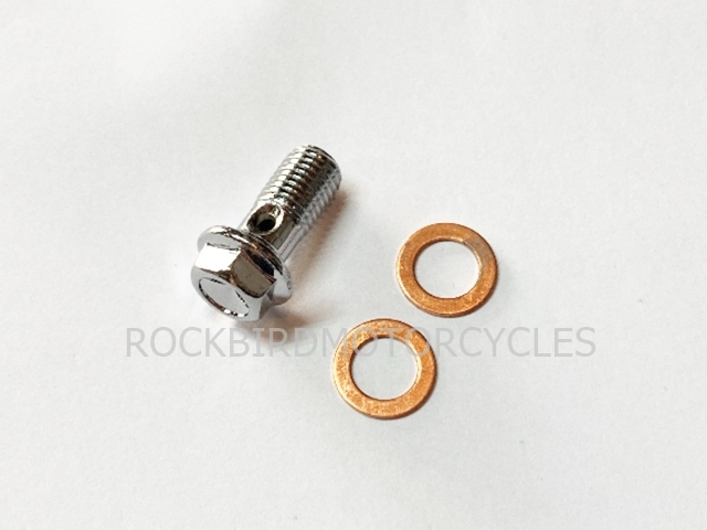 | ブレーキホースの自作に必要なバンジョーボルトM10-P1.25。安心・頑丈なスチール製 新品です。 自作にはシビアなアルミ素材より、安心・頑丈なスチール製を推奨します。 色/クローム。銅ワッシャ2付き。 ハンドルに合わせてお好きな長さのブレーキホースを自作してください。