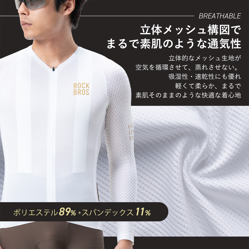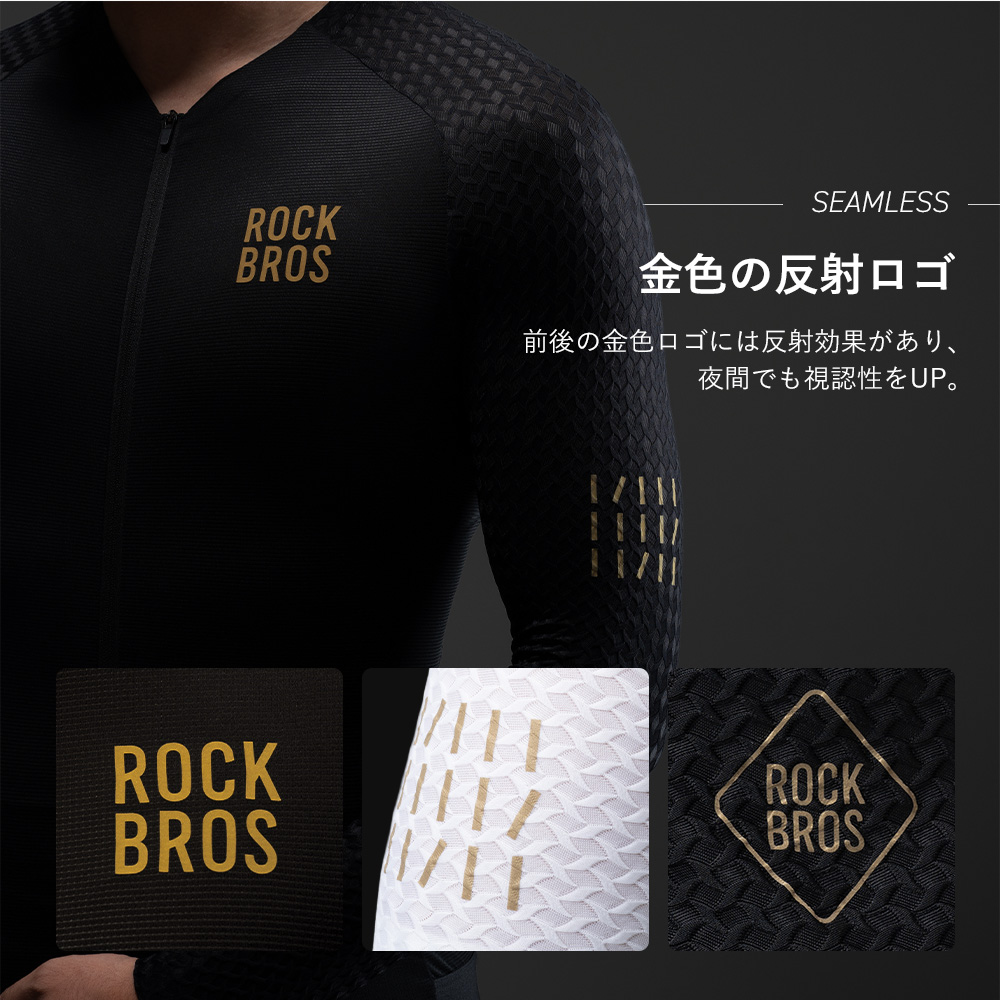 サイクルジャージ 長袖 軽量 サイクリングシャツ 吸湿 速乾 柔らかい 快適 立体構造 反射ロゴ YKK 自転車 ロードバイク クロスバイク MTB ウェア ロックブロス