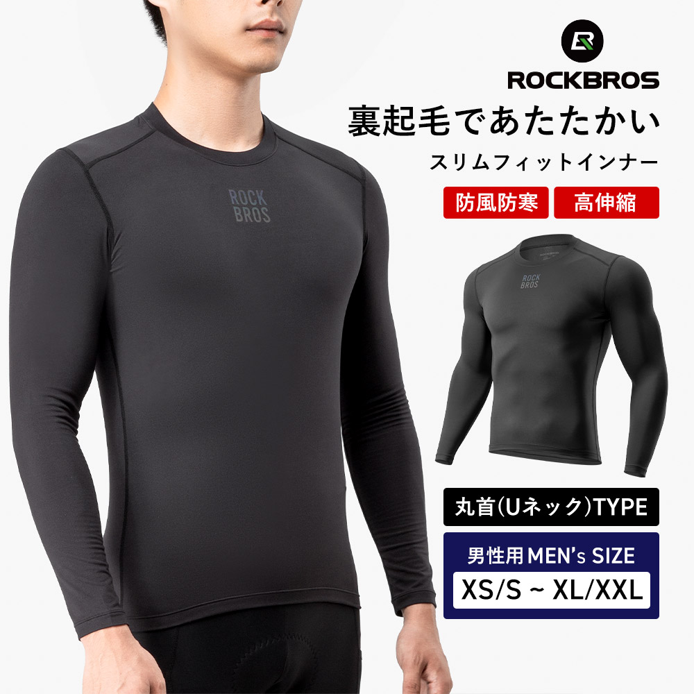 インナー 防寒 蓄熱 長袖 アンダーウェア 裏起毛 保温 コンプレッションウェア クルーネック ロックブロス