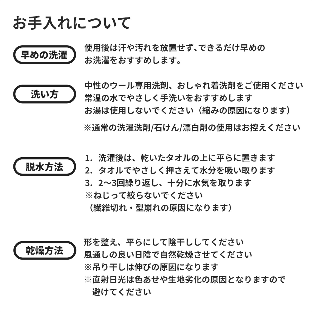 ・中性のウール専用洗剤またはpH7前後の中性洗剤を使用してください。