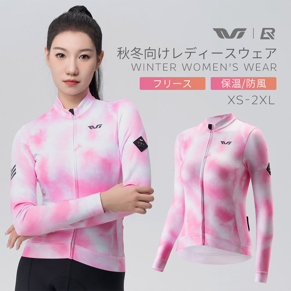 サイクルジャージ サイクルウェア 長袖 秋冬 フリース 裏起毛 保温 防風 レディース 女性 ジャージ ロードバイク おしゃれ 可愛い TVI ロックブロス