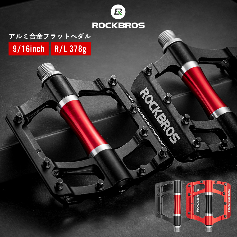 自転車 ペダル フラット アルミ 9/16インチ アルマイト加工 高耐久 スパイクピン クロスバイク ミニベロ ロックブロス 爆買
