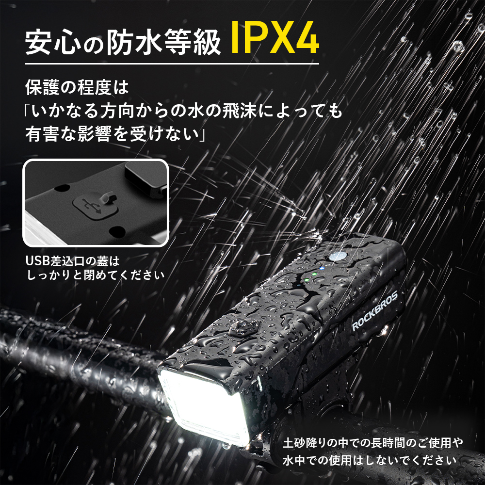 多少の雨や水飛沫に対応できるIPX4級防水