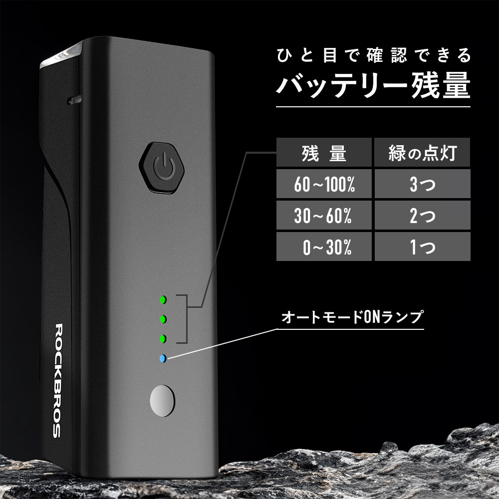使用中、本体上面の緑ランプがバッテリーの残量をお知らせします。