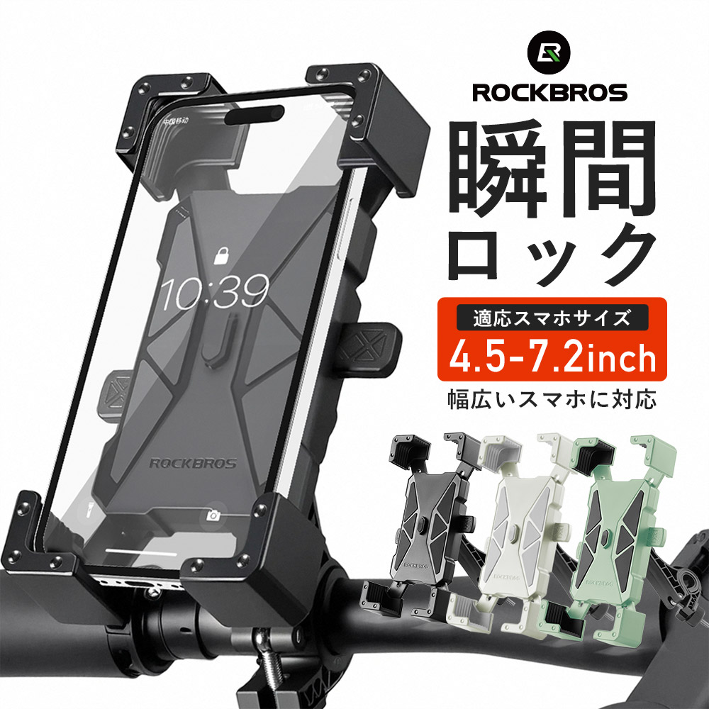 スマホホルダー 自転車 ワンタッチ 自動ロック スマホ iphone16 iphone16pro 瞬間 携帯 360度回転 角度 傾き 調整可能 大画面スマホ ロックブロス