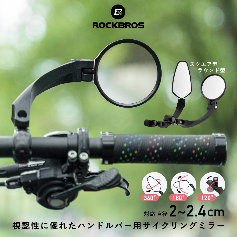 自転車 ミラー サイクルミラー バックミラー 鏡 ハンドルバー 20mm?24mm対応 後方確認 ロードバイク クロスバイク ロックブロス