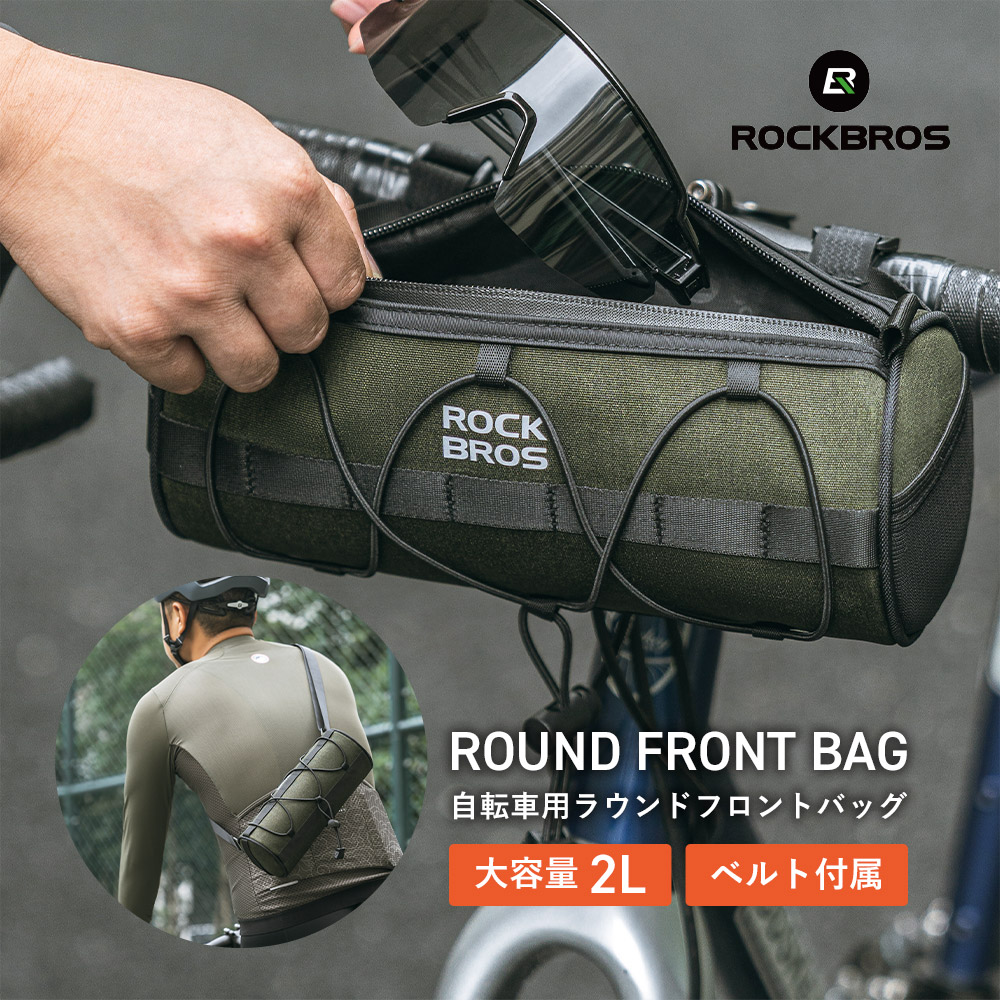 自転車 フロントバッグ ハンドルバッグ 丸 ドラム型 ショルダーバッグ 2L おしゃれ ロックブロス