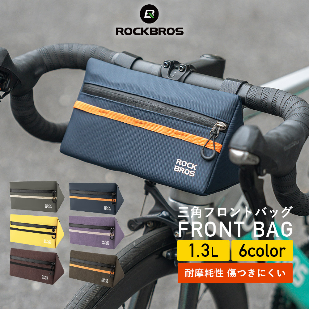 自転車 フロントバッグ ハンドルバッグ 三角形 フラット ハンドル ドロップ くすみカラー 1.3L ロックブロス