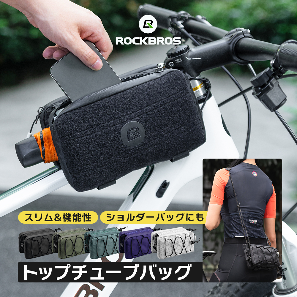 自転車 バッグ トップチューブ ショルダーバッグ 2way スリム 機能性 収納 1L バンジーコード おしゃれ サイクリング ポタリング ロックブロス ROCKBROS