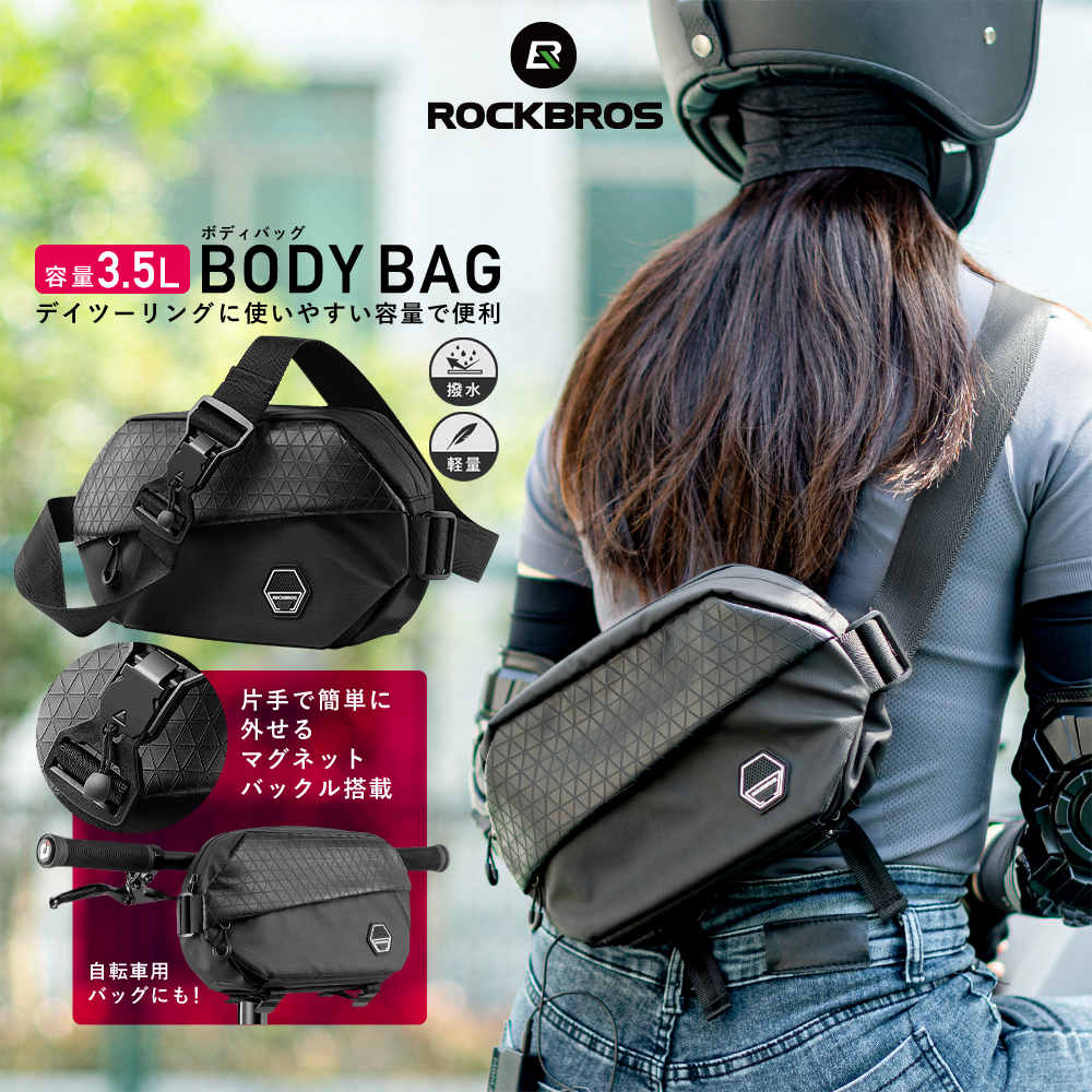 自転車 バイク ボディバッグ ショルダー ウエスト 撥水 防犯 背面ポケット ツーリング ロックブロス