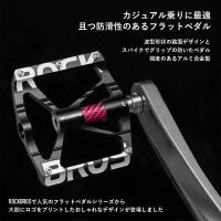 自転車 ペダル フラット 9/16インチ アルミ 波型形状 踏みやすい 幅広 スパイク付き MTB クロスバイク ミニベロ ロックブロス