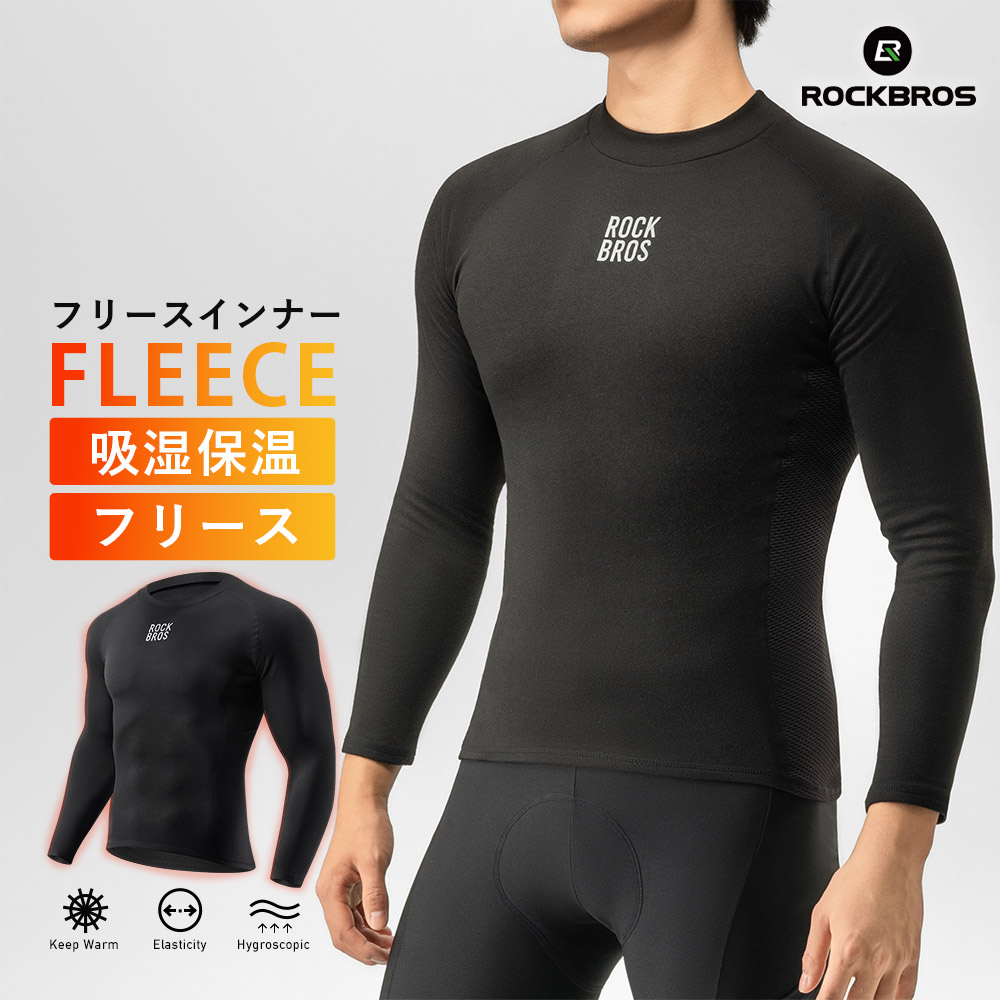 インナー メンズ フリース 保温 防寒 丸首 冬 防風 防寒着 アンダーウェア 暖かい 下着 肌着 長袖 スポーツ ジム ロックブロス