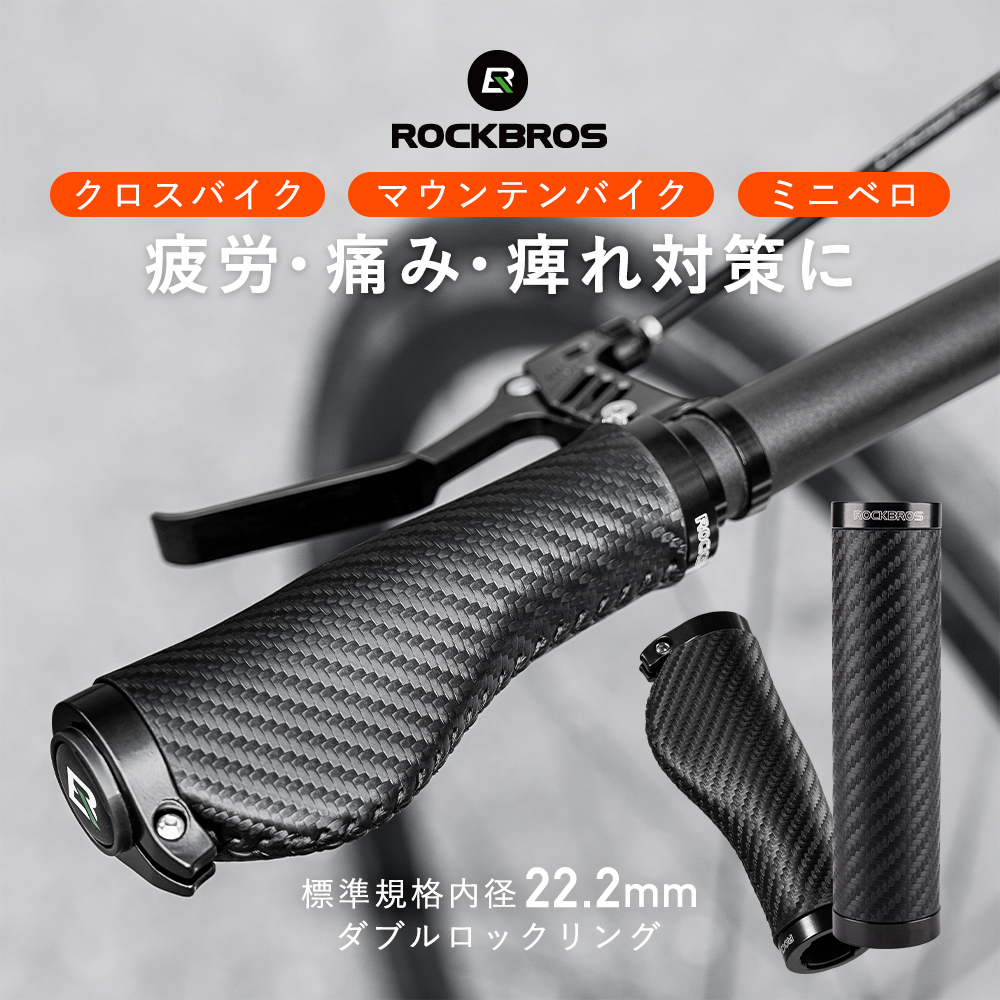 自転車 グリップ 交換 エルゴ 丸 筒型 フラット ハンドル 22.2mm 手 痛み 疲労 衝撃 カスタマイズ クロスバイク マウンテンバイク ミニベロ ロックブロス