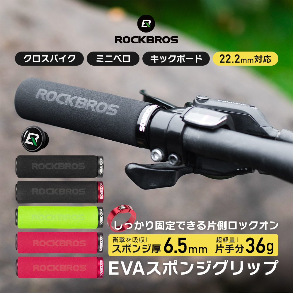 自転車 グリップ 交換 ハンドル 衝撃吸収 ロックオン 握りやすい MTB クロスバイク 軽量 EVAスポンジ キックボード ロックブロス ROCKBROS