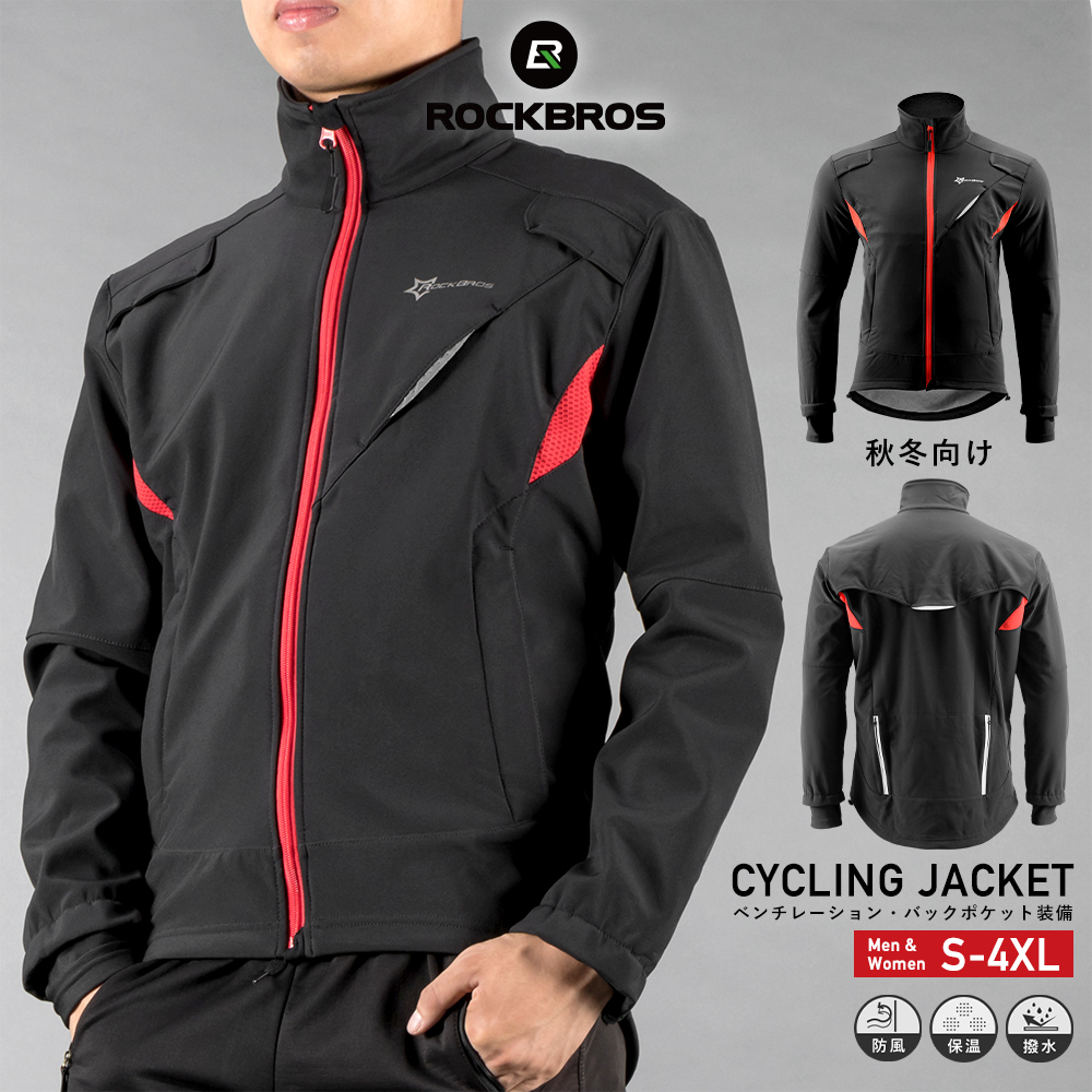サイクルジャージ サイクリングジャケット 秋冬 長袖 ジャンパー 防風 撥水 フリース素材 ロックブロス